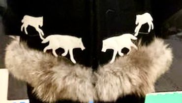 The seamstresses who make our parkas cut the individual appliqués and tailor them to the colour of the parka and the shell. The Canada Geese shown above in black, for example, would be sewn in white if the appliqué were ordered on a black background.