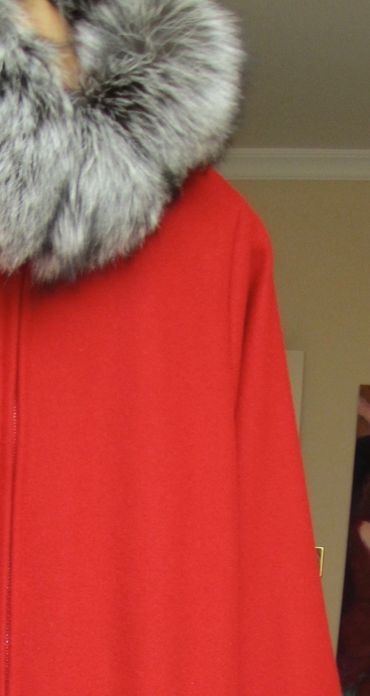 Full-length parka coat. Plush silver fox keeps the wind out from getting in at your neck and wrists.